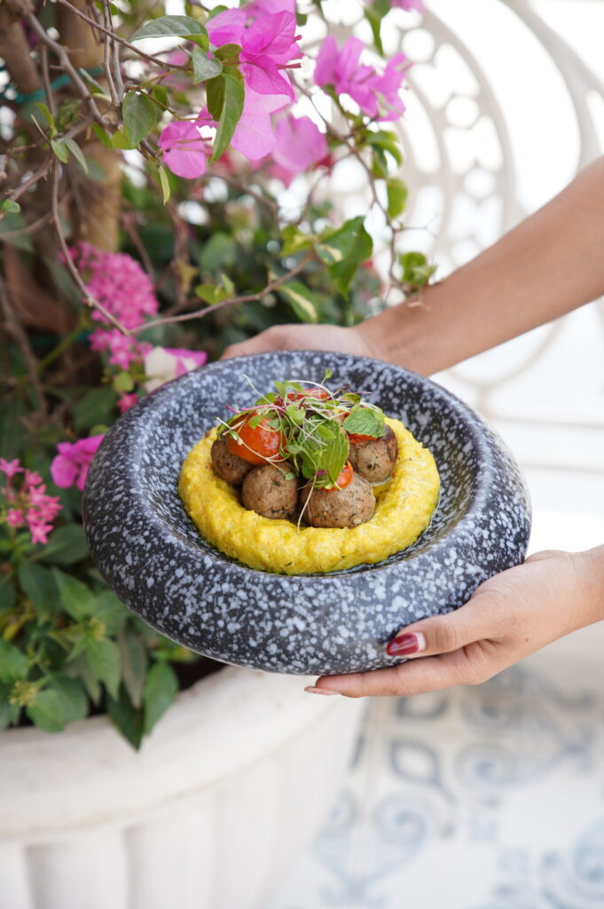The savoury plates speak of slow cooking and depth: Beef Meatballs with Creamy Polenta arrive rich and comforting; Creamy Hummus with Slow-Cooked Lamb layers earthiness and warmth; Tenderloin finished with Mushroom Ragù Cream and Chimichurri balances richness with freshness. Red Wine–Braised Chicken brings bold, fall-apart tenderness to the table, while Grilled Salmon with Prosecco Cream offers a lighter, celebratory counterpoint, soft and luminous in texture.