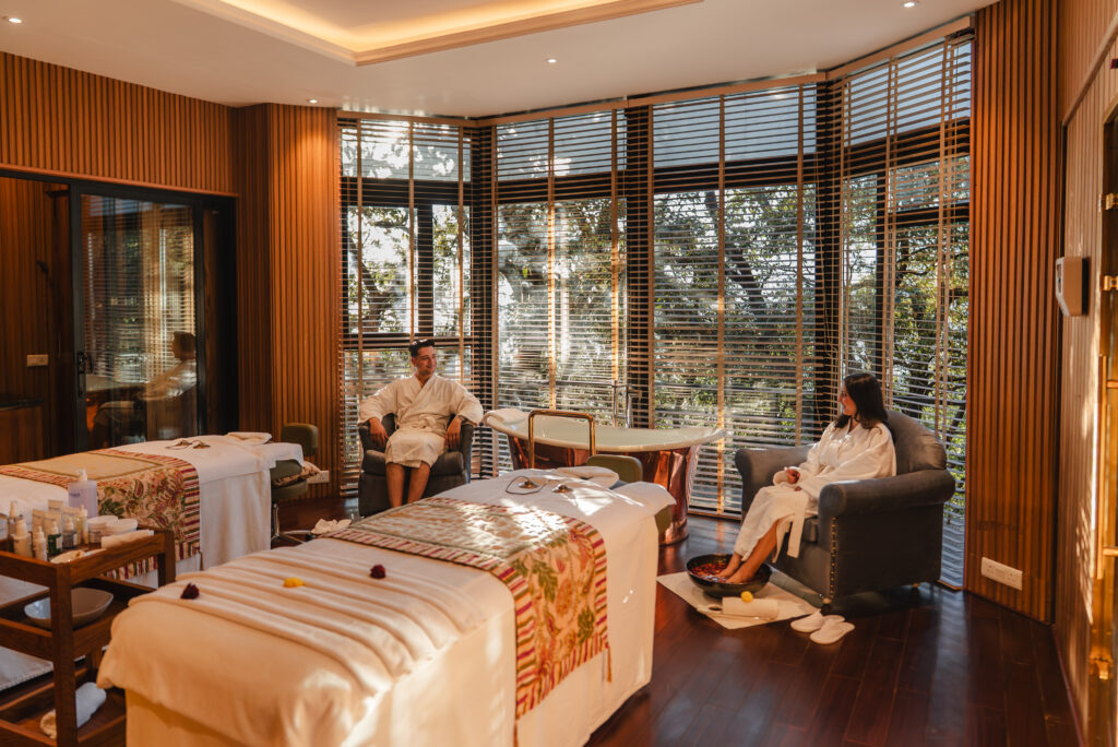 Thoughtfully designed to mirror its serene surroundings, the spa is lit with soft natural light, warm wood