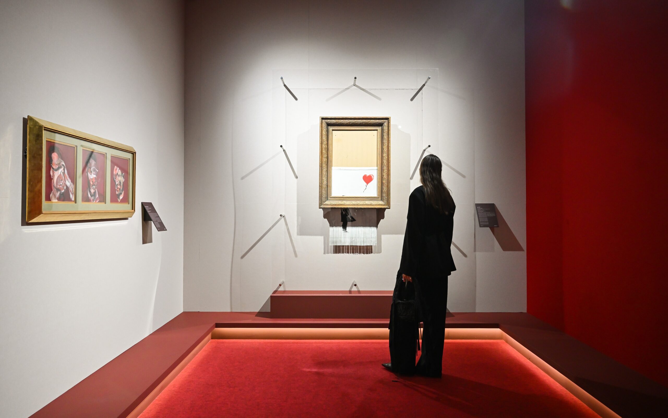 The exhibition includes such masterpieces as Andy Warhol’s Shot Orange Marilyn (1964), notably marked by a bullet hole from an unapproved piece of performance art at the Factory, sold for $17.3 million at Sotheby’s in 1998, made possible by Kenneth C. Griffin. Banksy’s Girl Without Balloon, which famously self-shredded during its 2018 Sotheby’s auction, thanks to a hidden mechanism in its frame, leaving the canvas half-destroyed and instantly transforming it into a live performance, will also headline the exhibition.
