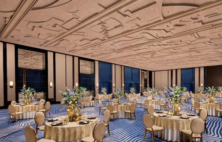 Private entry and organised guest flow are made possible with a 1,300 square foot pre-function space and a separate entrance. A live kitchen concept is also a part of the facility, so parties can have their food prepared right there. With an emphasis on modern detailing, the design showcases a colour palette of neutral tones, deep blues, and gold accents. Menus featuring locally produced ingredients and a zero-waste philosophy are just two examples of the hotel’s sustainability initiatives.