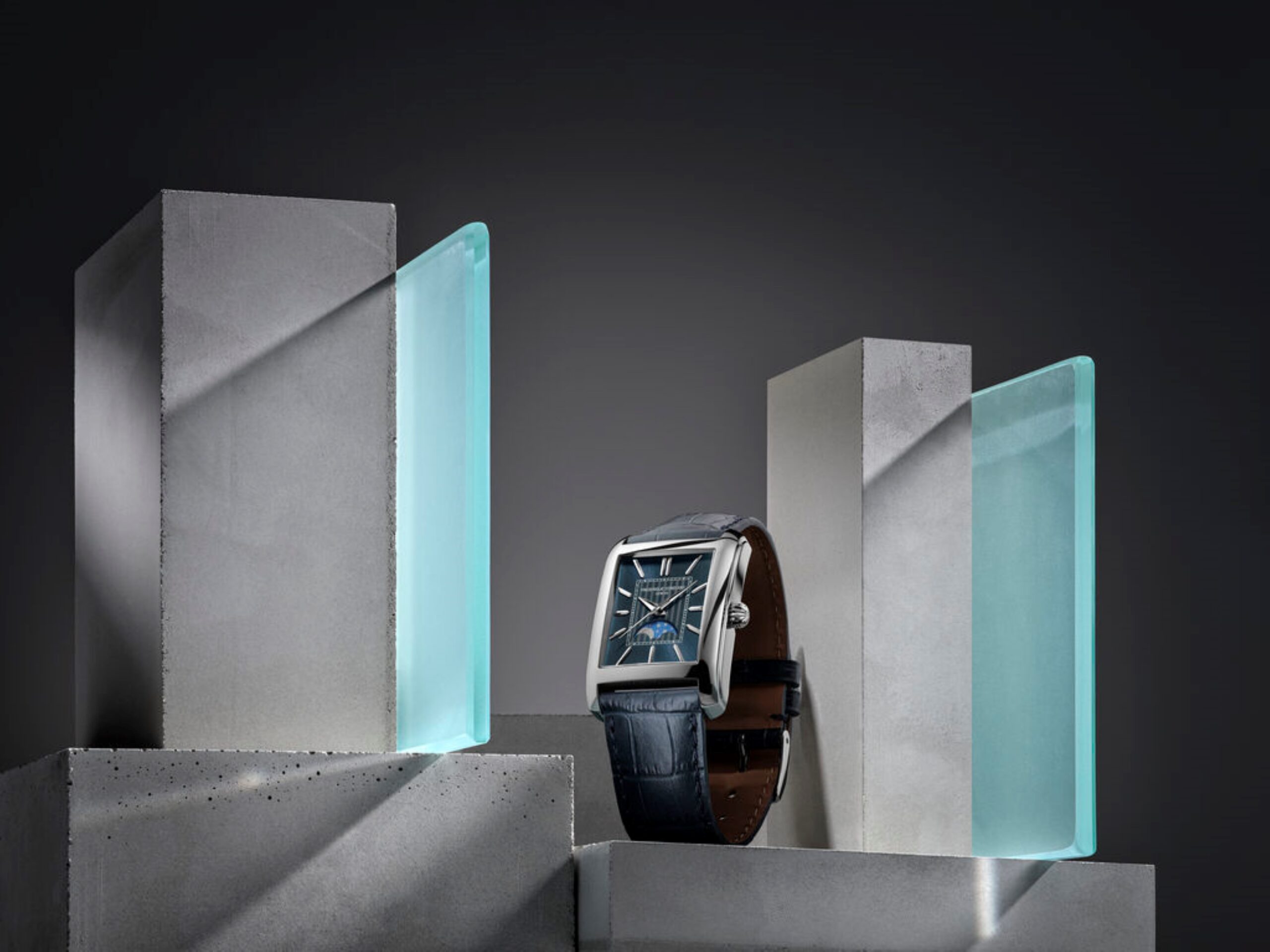 The Classic Carrée Automatic is an iconic Frederique Constant model, embodying the brand’s timeless elegance. Several versions of the timepiece are already available, the most popular automatic models being those with a date complication or a Heart Beat aperture. Now, for the first time there’s a Classics Carrée Automatic featuring only a Moonphase. The sophisticated complication sits at six o’clock, showcased on a choice of two chevron guilloche dials with an elegant sunray finish – one silvered, the other navy blue. Both are housed in a 42.30 x 30mm steel case mounted on a calfskin strap with tone-on-tone topstitching. The graceful new Moonphase offers a further demonstration of how tastefully the range pays homage to the watchmaking of the Twenties and Thirties.