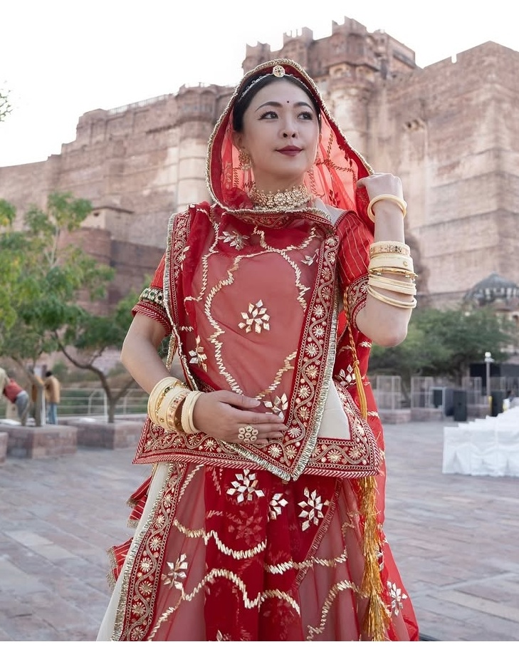 Standing amid the vibrant procession of Gangaur in Jaipur—surrounded by swirling leheriya drapes and the cadence of folk melodies—Madhu’s eyes reflect the same wonder she first felt years ago in a Tokyo cinema hall. It was there, watching an Indian film, that she caught her first glimpse of Rajasthan. That fleeting exposure ignited a lifelong fascination.