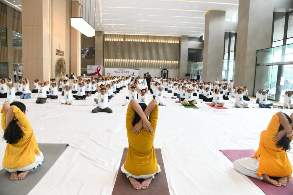 At Yashoda Medicity, around 500 participants attentively followed the Prime Minister’s lead, performing asanas and breathing exercises together. Certified trainers conducted a session on the Common Yoga Protocol.