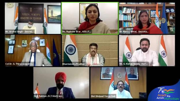 On the eve of India’s 75th Independence Day celebration today on Saturday, the 14th August 2021, the Ministry of Tourism in collaboration with the Association of Indian Universities (AIU) held a webinar. During the webinar, a series of 12 episodes was launched that will take the participants on a virtual journey of Incredible India. The event was inaugurated by Union Minister of Tourism, Culture and Development of North Eastern Region (DoNER) Shri G Kishan Reddy. The Union Minister of Education and Minister of Skill Development & Entrepreneurship Shri Dharmendra Pradhan was the esteemed Chief Guest of the event. Minister of State for Tourism Shri Shripad Yesso Naik, Minister of State for Tourism Shri Ajay Bhat along with Col Dr. G. Thiruvasagam , President AIU, Shri Arvind Singh, Secretary Ministry of Tourism graced the occasion.