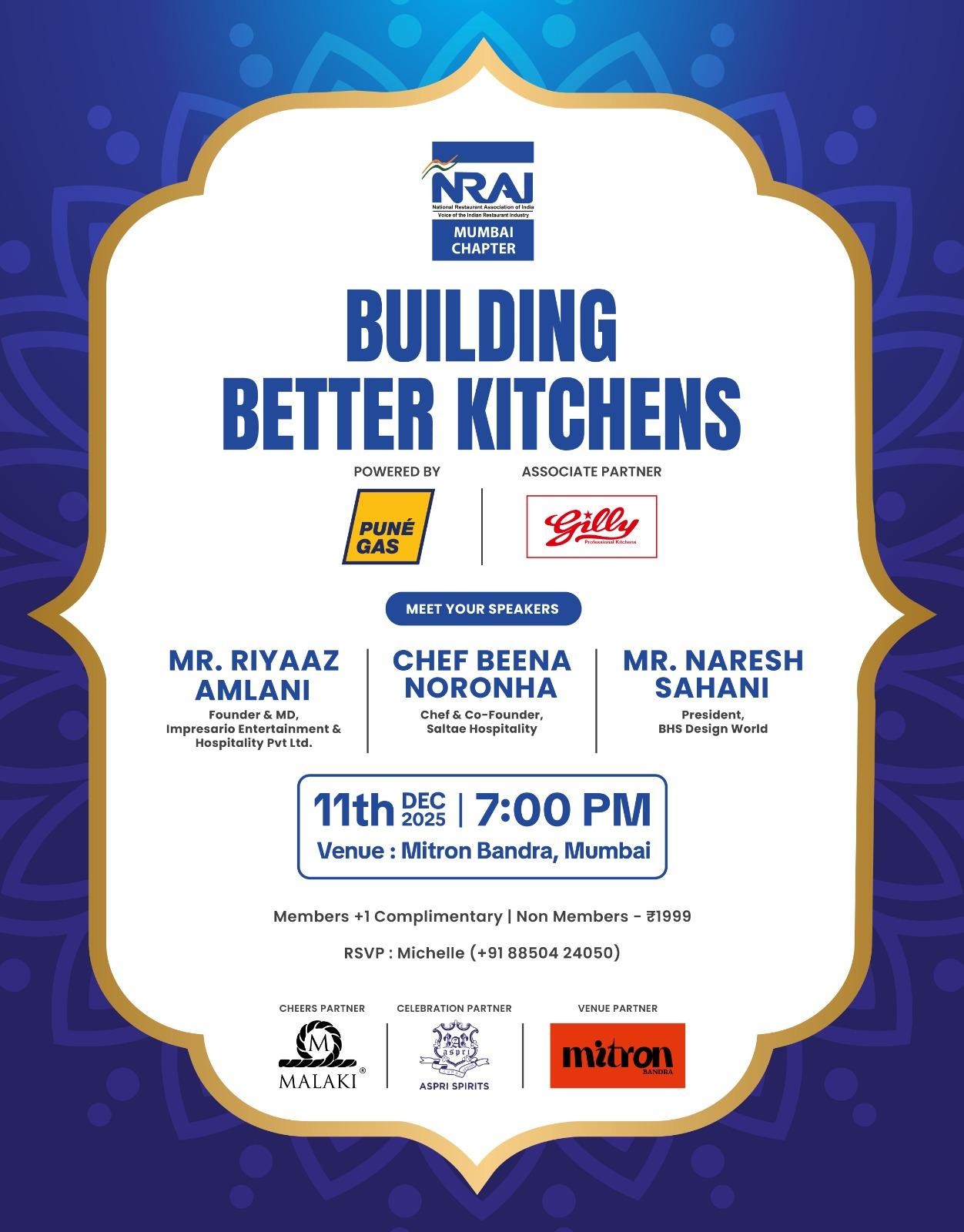 We are delighted to invite you to the NRAI Mumbai Chapter Presents ‘Building Better Kitchens’ – A Knowledge-Led Industry Meet-Up on 11th December, 7 pm at Mitron Bandra.
