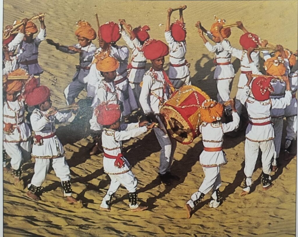 The Rajasthan Tourism Department has taken significant steps to integrate folk arts into its cultural tourism strategy. The department organises over 30 fairs and festivals annually, including Gangaur, Teej, the Desert Festival, Pushkar Fair, and the Brij Festival. Traditional folk performers from communities such as Manganiyars, Langas, Mirasis, Bhats, Bhopas, and Jogis are regularly invited to perform, both at festivals and in trade fairs and tourism marts. This effort not only helps preserve Rajasthan’s heritage but also provides recognition and sustainability to its artists.