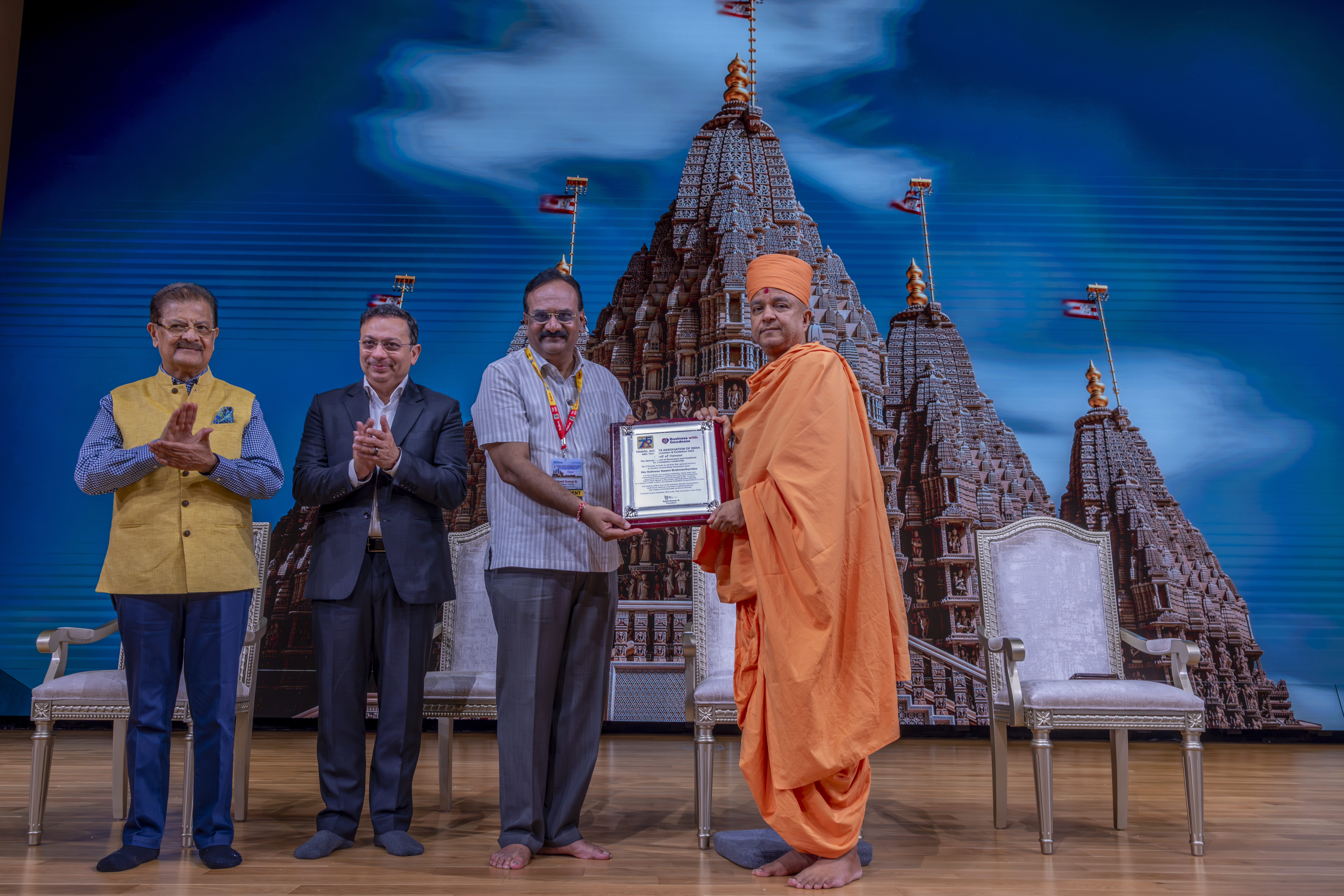 The Convention’s central theme, Business with Goodness, was brought to life in the serene atmosphere of the BAPS Temple Convention Hall, where His Holiness Swami Brahmaviharidas delivered an inspiring address. TAAI is honoured to have presented the Scrolls of Honour to His Holiness Mahant Swami Maharaj and His Holiness Swami Brahmaviharidas.