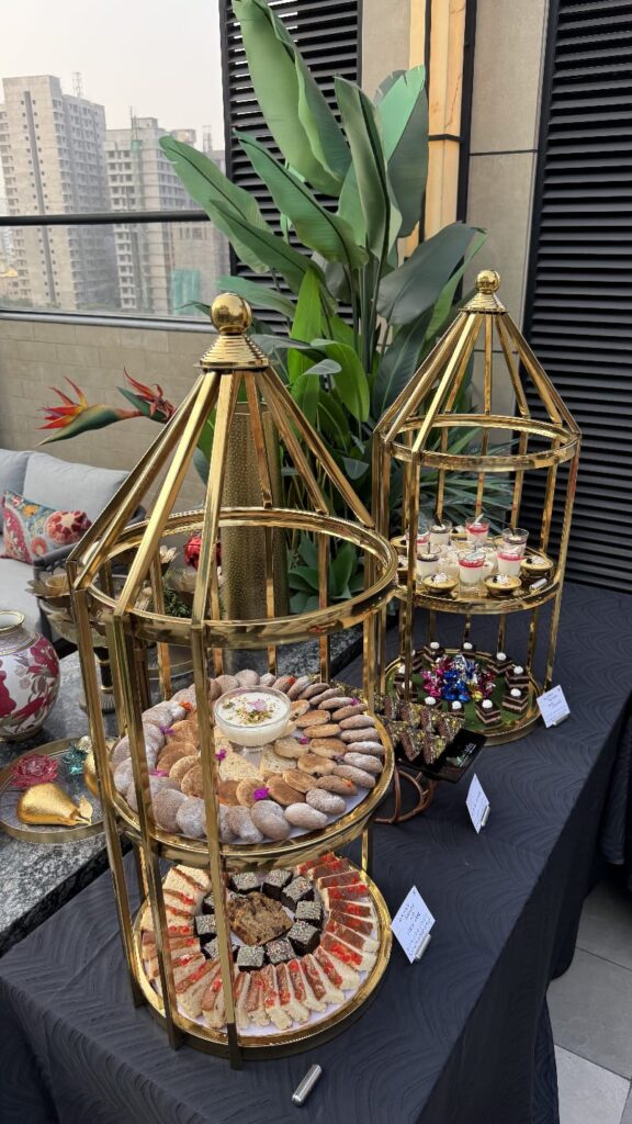 Following the mixing ceremony, guests enjoyed an elaborate Hi-Tea spread featuring festive favourites complemented by Lebanese-inspired creations from Beiruna’s kitchen. Mezze bites, baklava, aromatic teas, cakes, and scones added to the indulgent experience, while live music and the enchanting sunset ambience elevated the evening.