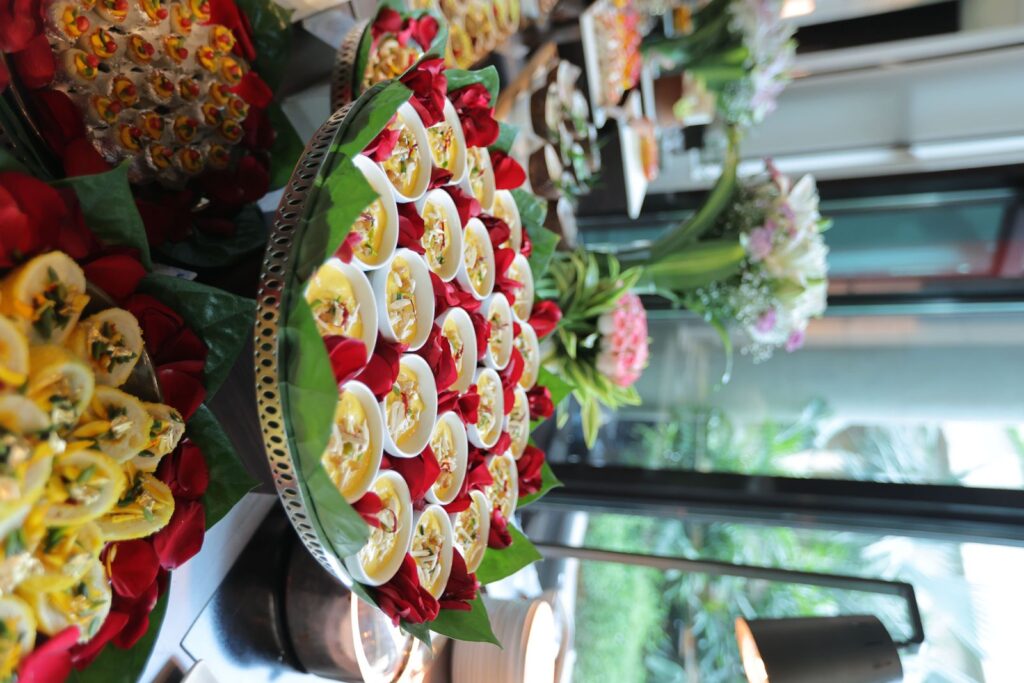 From the moment guests walk through the entrance, a gallery of niches welcomes them, each holding ornate frames with vintage photographs and embroidered emblems in opulent red and gold. These curated relics, inspired by Delhi’s iconic architecture, echo the city’s majestic past and add sculptural storytelling to the space. Metal partitions lend a sleek, modern edge, yet every detail whispers tales of Delhi’s regal heritage, wrapped in luxury and elegance. In this space where history is not just remembered but reimagined, guests experience a setting of refinement and grandeur befitting The Leela, where every meal is a taste of craftsmanship and every corner a tribute to Delhi’s timeless elegance.