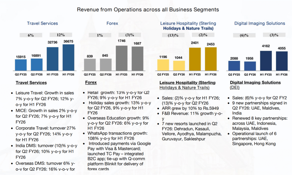Thomas Cook (India) Limited reports Revenue from Operations growth of 9%y-o-ytoRs. 44,818 Mn for H1 FY26; growth of 3% y-o-y to Rs. 20,738 Mn for Q2FY26despite headwinds owing to geopolitical events and weather disturbances inkeydomesticmarkets