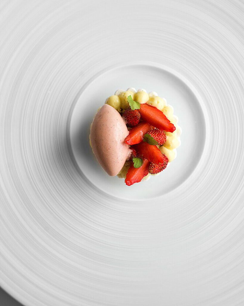 Immarti Waffle with Strawberry Chili Ice Cream & Mango Vegan Espuma by Chef de Cuisine Soham Dhar, CUR8, Four Seasons Hotel Bengaluru