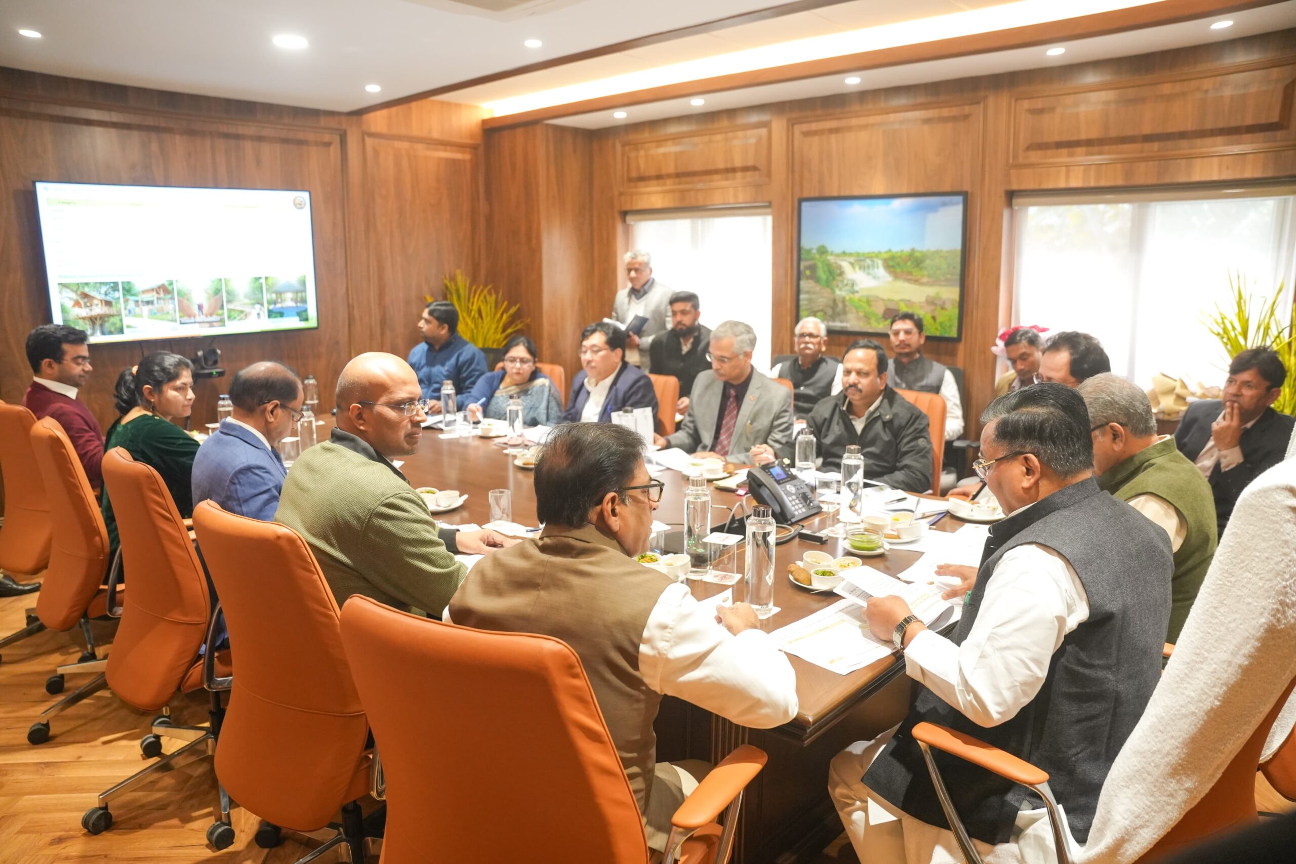 Proposed infrastructure includes entrance gates, nature trails, watchtowers, signage, cottages, gazebos, reception areas, canteens and RO drinking water facilities. Discussions also covered training of eco-tourism guides and drivers, improving visitor signage, and appointing consultants, all in consultation with the Forest Department.