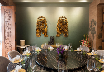 The artistic expression extends into the hotel’s dining spaces. Erawaan features Ramayana-inspired artwork and intricately detailed mandalas across its ceiling, while Jade showcases artist Ankon Mitra’s hand-painted dragons and sculptural brass “Fu Dogs,” adding layers of symbolism and visual detail.